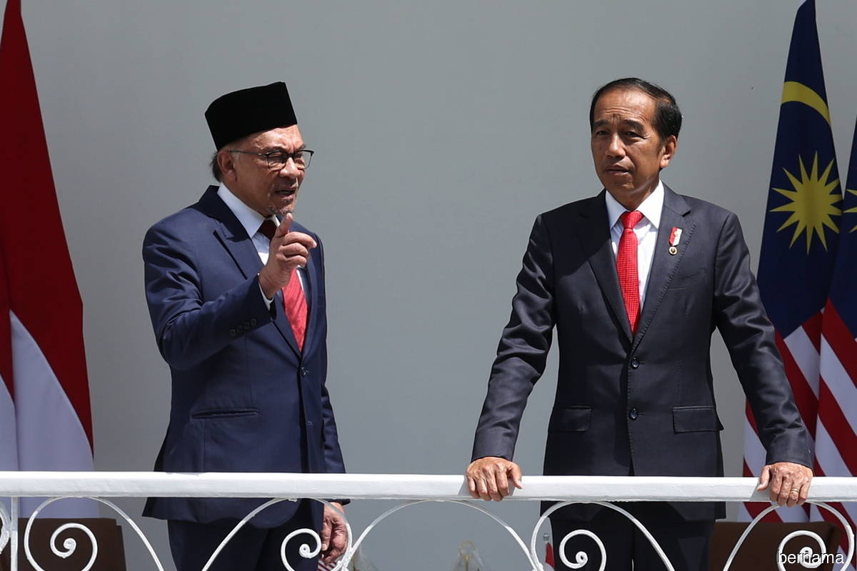 The comments by Indonesian President Joko Widodo (right) followed a meeting with Prime Minister Datuk Seri Anwar Ibrahim, who was making his first overseas trip since being elected in November.–A