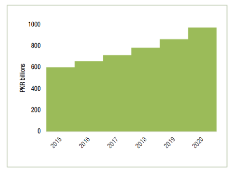 Figure 1: Sales of packaged food in Pakistan (2015-20) (PKR billion)