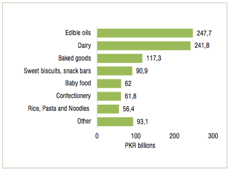 Figure 2: Sales of packaged food in Pakistan, by product category (2020) (PKR billion)