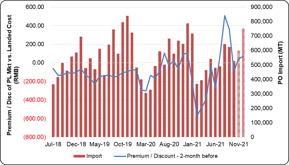 Chart 2 – Import Margin of RBD PL vs. PO Import Vol.