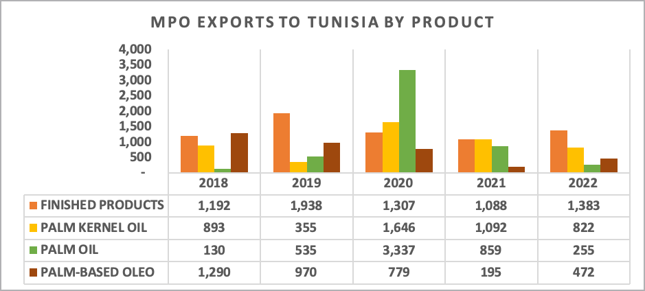 The Tunisian government’s efforts to promote local food production have positioned Tunisia as a promising market for the expansion of palm oil. The development of the food manufacturing sector in the country has contributed to the growing momentum of palm oil and created an excellent opportunity for increased consumption. The recorded uptrend in 2022 further underscores the high potential for additional demand in the near future. Additionally, Tunisia’s strategic location on the Mediterranean Sea enhances its suitability for entering the European market. This advantage is bolstered by the trade agreement between Europe and Tunisia, which provides further support for trade and expansion. As a result, there is a rising need for more palm oil to meet the demands of local production and facilitate the export of palm oil-based products.
