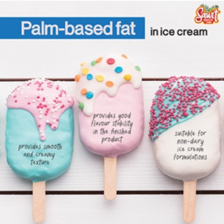 Ice cream production involves incorporating oil and water, to generate oil-in-water emulsion. It is crucial for the fat component of ice cream to have sharp melting properties to ensure good organoleptic characteristics. Particularly, palm-based fat such as Malaysian palm oil and palm kernel oil fits nicely as a dairy fat substitute in ice cream as they are comparable to milk fat in their appearance, texture and melting properties. It is also suitable for non-dairy ice cream formulations.