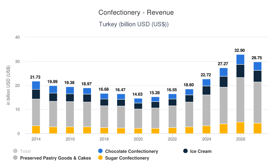 Turkiye is the biggest importer of Malaysian CSPO products in the region and has been a strong consumer of palm oil products. The CSPO product requirements have mainly been applied to the confectionery sector and exports to European countries. The confectionery sector is big in Turkiye with revenues amounting to USD16.55 billion in 2022. The sector is expected to grow by 12.44% (CAGR) annually for the period of 2022 to 2027, as shown in Chart 1. With positive growth in this sector, we may see a bigger demand for CSPO products by this sector in the years ahead.