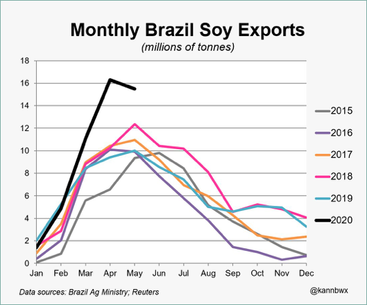 Additionally, news on large soybean purchase by China also contributed as a booster to soybean prices. The robust demand from Chinese crushers is to cover their COVID-19 related supply-side uncertainties. A Chinese agency estimated the country’s 2020/21 soybean import to be around 93.6 million MT, which would be a nearly 3% increase over the previous season (Agriculture.com). Chinese import demand for US soybean is likely to stay comparatively low for the month of April-June 2020 because preference has been given to Brazilian soybean. Soybean from Brazil have gained additional price advantage over its main competitor; US soybean, due to low Brazilian real currency combined with good harvest pace. Almost 75% of Brazilian soy shipments had been destined for China in the first four months of 2020 (S&P Global).